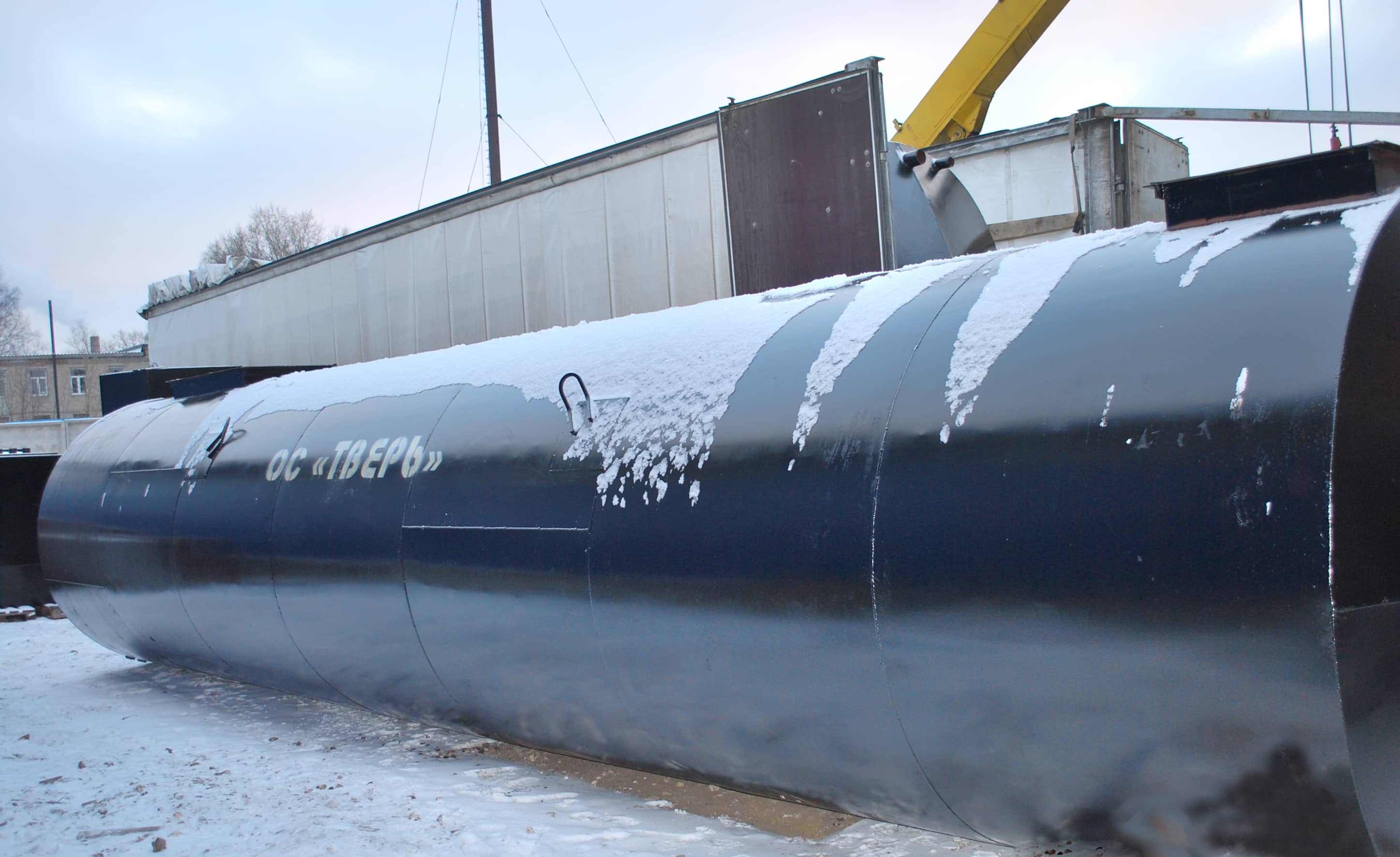 Габариты очистного сооружения: 4 блока очистки длиной 11600 / диаметром 2400 / весом 27700 кг.